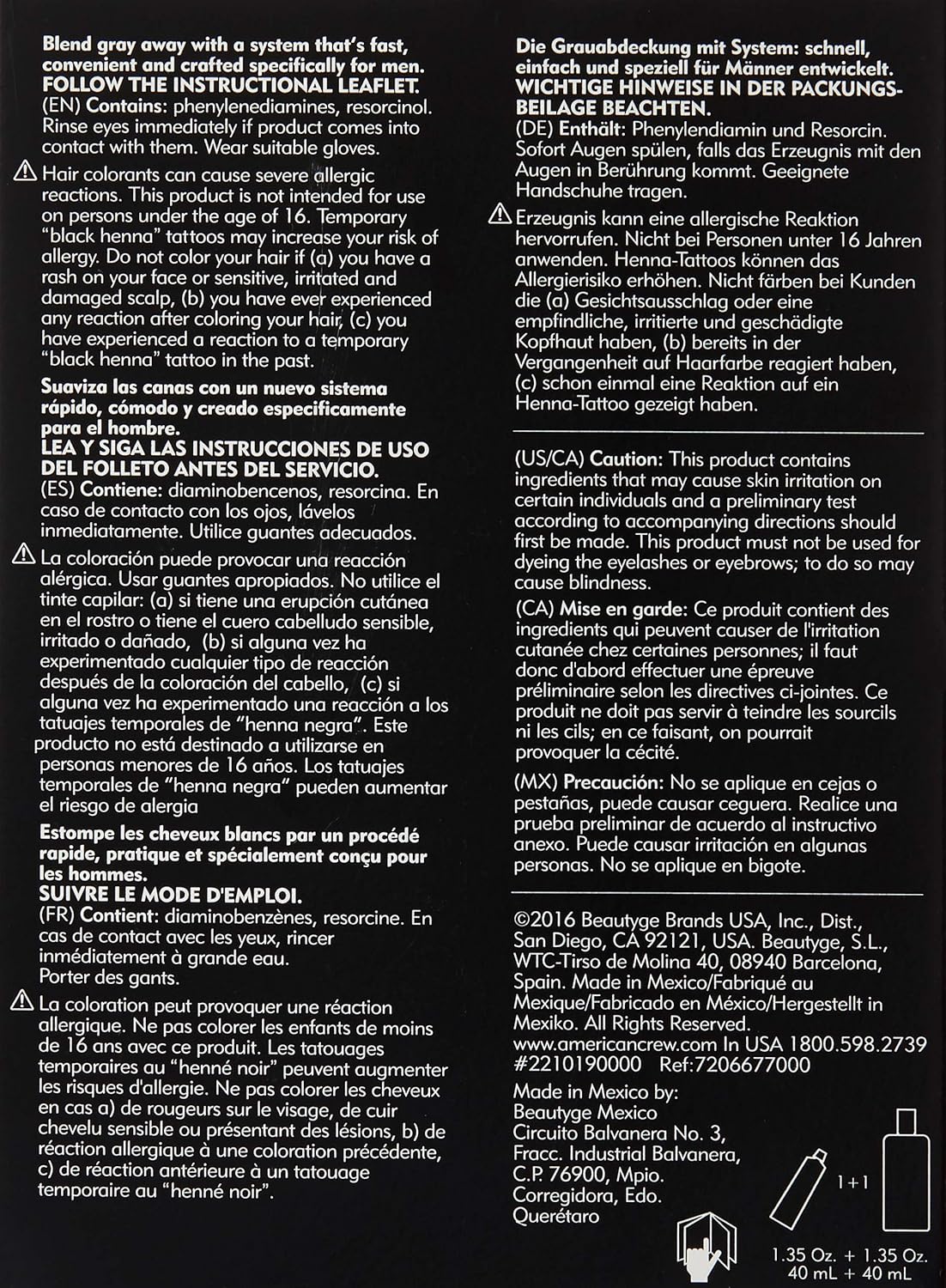 • Mix the color with the American Crew Developer at a 1:1 ratio. Generally, about 20ml will be needed to complete the service on a client with hair that is 1” long.
