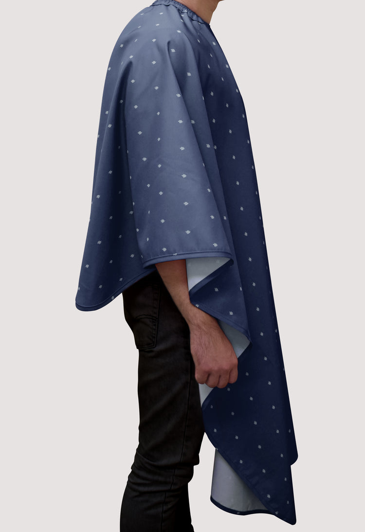 The Barber Cape Shield collection is engineered with water resistant, static-reducing carbon fiber material to help repel hair. The shield collection barber cape is available in white, blue, red, and black.
