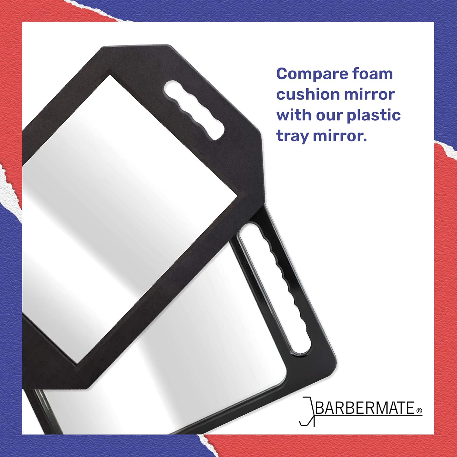 Elevate your hairstyling game with the BarberMate Foam Framed Mirror. This large, high-quality glass mirror is encased in a thick, protective foam frame, making it both durable and stylish.