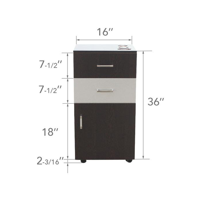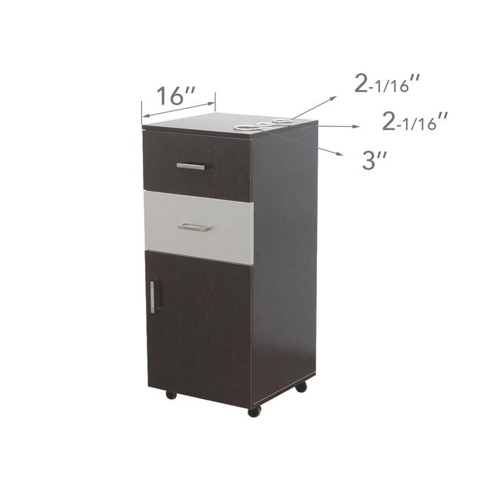 The "Bella" rolling styling station allows you to move your tools freely! No matter the profession this is a very handy cabinet to have in the home or office. The station has 2 drawers, a small cabinet and 3 appliance / accessory holders.