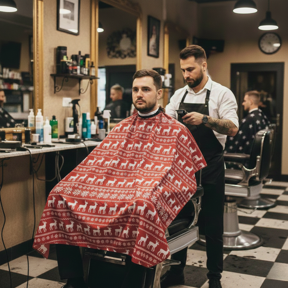 The Campbell's Limited Edition Ugly Sweater Holiday Cape is a festive and practical accessory for the holiday season. It is made of a lightweight, water-resistant polyester fabric, and features a festive "ugly sweater" print. The cape has snap neck closures that fit most clients, and measures 45" x 60" to keep even tall clients fully covered. It is perfect for wearing to holiday parties, events, or simply around the house to spread some holiday cheer.