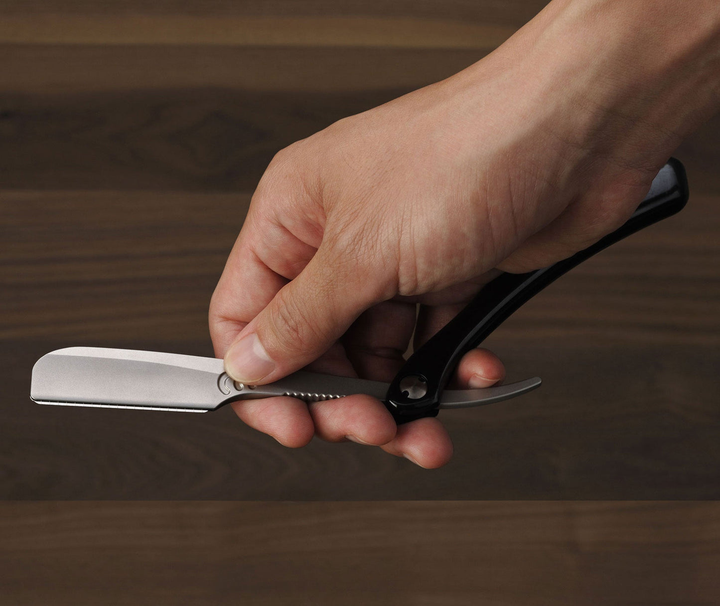 EXPERIENCE THE POWER PLUS OF THE NEWEST FEATHER FOLDING SHAVING RAZOR! Now, shaving thick facial hair leaving a soft feel on the skin is made easy with the powerful new Feather Artist Club SR Folding Razor. These superior results have everything to do with the heavier-yet-smooth weight of the razor, which alone is enough to handle thick beard shaving (less pressure needed). The tip of the razor is both rounded and thickened to enhance that soft feel. Add to that excellent no-slip grip and hold plus ideal balance between blade and handle — and you have finally met the challenge of this once tough shaving scenario. The raised handle features super-engineered polysulfone resin for heat, hydrolysis and chemical resistance. The concave shape of the spring-mounted SR head offers a comfortable shape and soft feel; sandblasted stainless steel means smooth gliding across the skin. This ultimate replaceable blade shaving razor uses any of the 5 different available blades. The folding handle comes in black, blue and pink. Handle and blades are made in Japan.