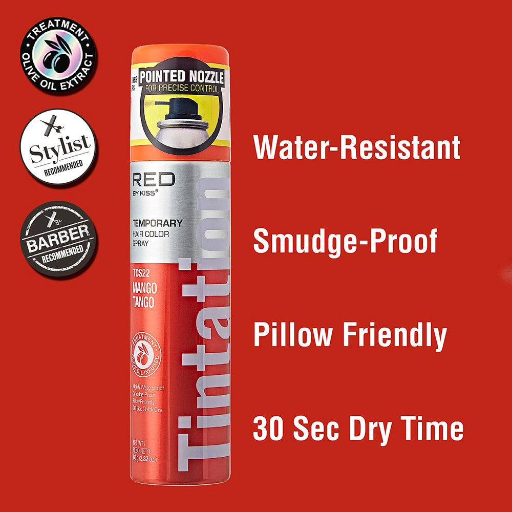 Specially formulated with Olive Oil, Tintation Temporary Hair Color Spray can be used to cover gray roots or get bold, fashionable looks.